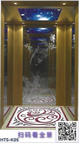 轎壁:木飾面,后壁鏡面蝕刻不銹鋼,兩側(cè)中間鏡面不銹鋼